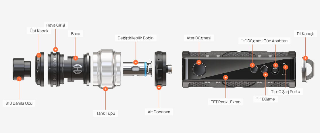 Aspire Huracan EX, yüksek buhar üretimi, güçlü aroma deneyimi ve özelleştirilebilir ayarlar arayan deneyimli kullanıcılar için uygundur. Hem performansı hem de tasarımıyla öne çıkan profesyonel bir cihazdır.