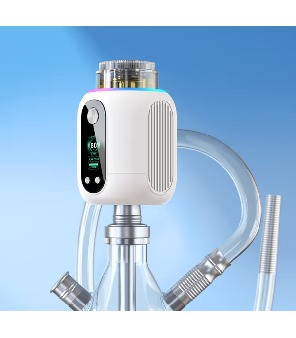 Beyaz Aspire Proteus Mini E Hookah, dijital ekranlı kompakt elektronik nargile.