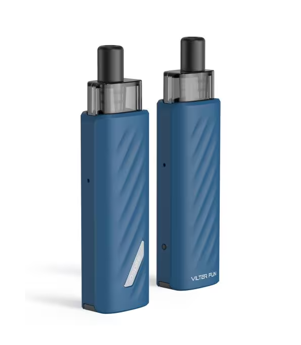 Aspire Vilter Fun, kompakt boyutu, modern tasarımı ve günlük kullanım için sunduğu pratik özellikleriyle öne çıkan bir pod sistemidir. Hafif yapısı sayesinde taşıması son derece kolay olan cihaz, şık Midnight Blue (Gece Yarısı Mavisi) rengiyle estetik bir görünüm sunar. Yeni nesil kullanıcılar için geliştirilen Vilter Fun, sabit voltaj çıkışı ve auto-draw (nefes sensörlü) sistemiyle sigara deneyimini elektronik ortamda daha keyifli hale getirir.