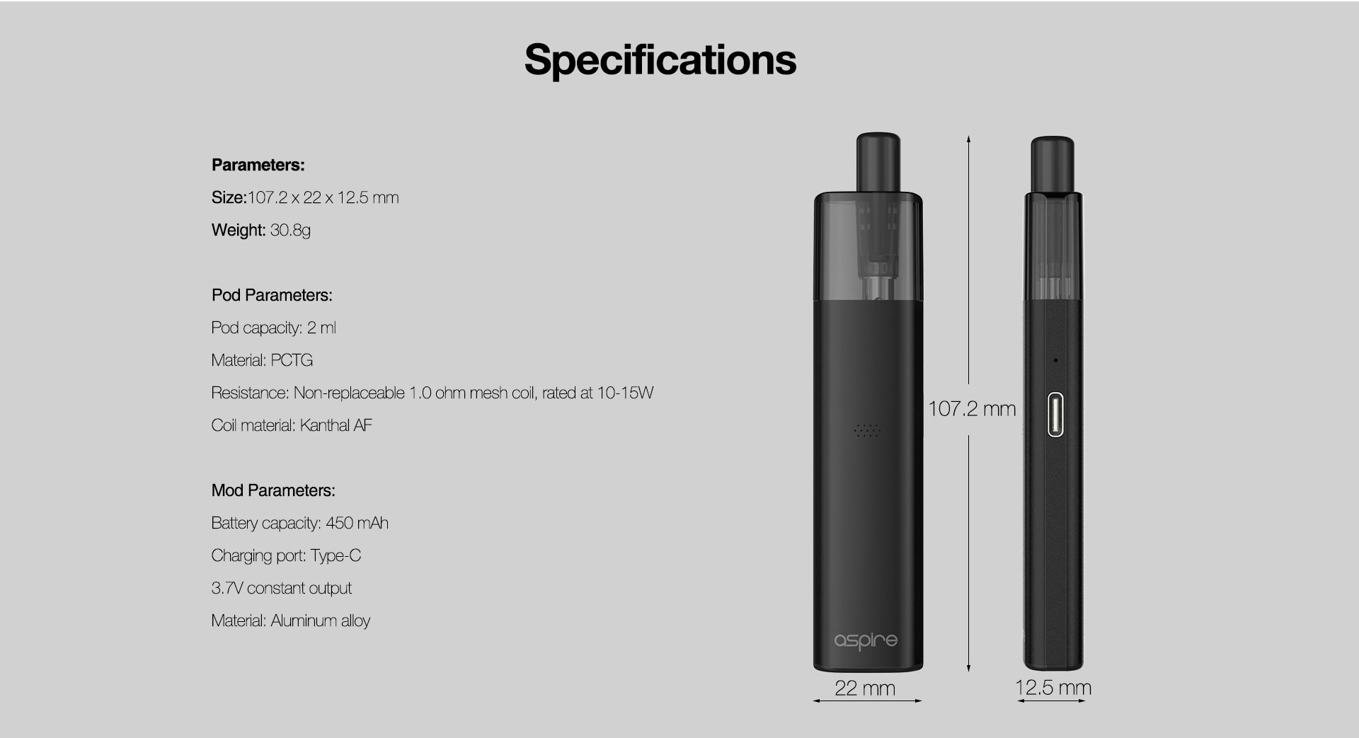 1* Aspire Vilter Pod Mod (450 mAh)