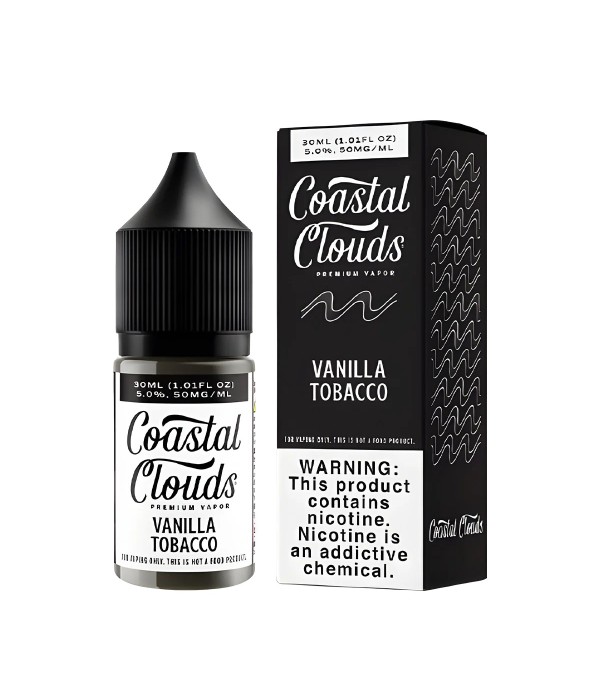 Coastal Clouds Vanilla Tobacco Salt Likit, klasik tütün aromasını yumuşak vanilya dokusuyla birleştirerek tatlı, zarif ve dengeli bir içim deneyimi sunar. 50VG / 50PG oranı sayesinde pürüzsüz içim ve yoğun aroma dengesi sağlar. 30 mL şişede, 35 mg ve 50 mg nikotin seçenekleriyle üretilmiştir.