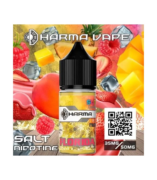Dharma Florida Salt Likit, çilek, ananas, mango, ahududu ve buz süt aromalarının tropikal uyumunu sunarak serinletici ve tatmin edici bir vaping deneyimi sağlar. 30 ml şişe, 35/50 mg nikotin seçenekleri ve premium formülüyle pod mod cihazlarla mükemmel uyumludur.