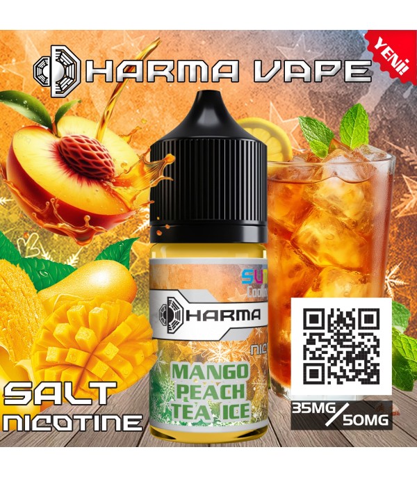 Dharma Mango Peach Tea Ice Salt Likit, tropikal mango, tatlı şeftali ve serinletici soğuk çay aromalarının birleşimi ile ferahlatıcı ve tatmin edici bir deneyim sunar. 30 ml şişe ve 35 / 50 mg nikotin seçenekleri ile pod mod cihazlarla uyumludur. Yoğun aroma ve dengeli içim ile yazın keyfini çıkarabileceğiniz ideal bir salt likittir.
