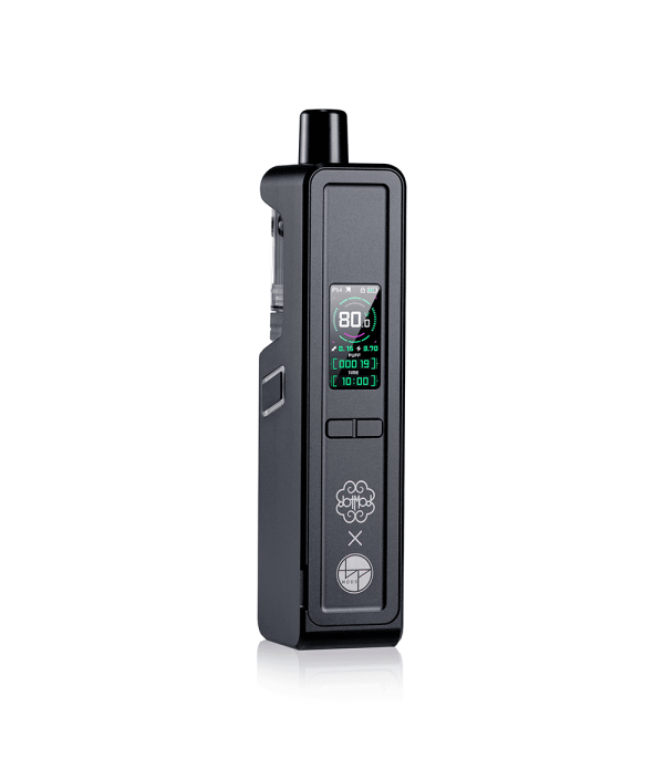 Siyah DotMod MissonXV dotApollo Pod Mod, dijital ekranlı, desenli.
