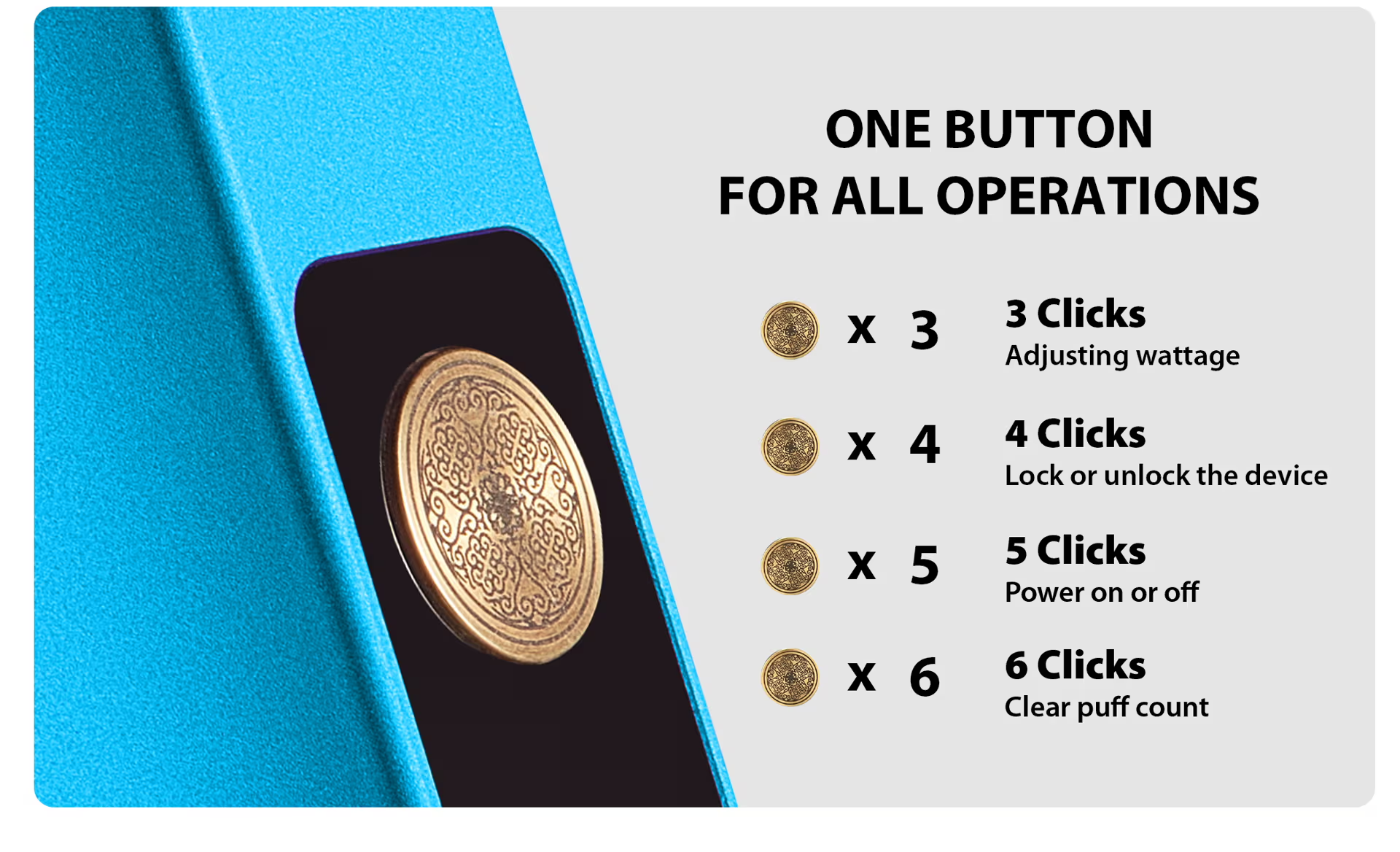 • Tek tuş + inhale modu ile hem deneyimli hem yeni kullanıcılar için kolay kullanım sunar.