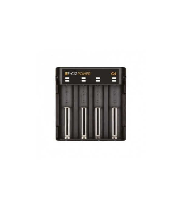 E-Cig Power C4 şarj cihazı, 4 bölmeli, siyah renkli, elektronik sigara pil şarj aleti.