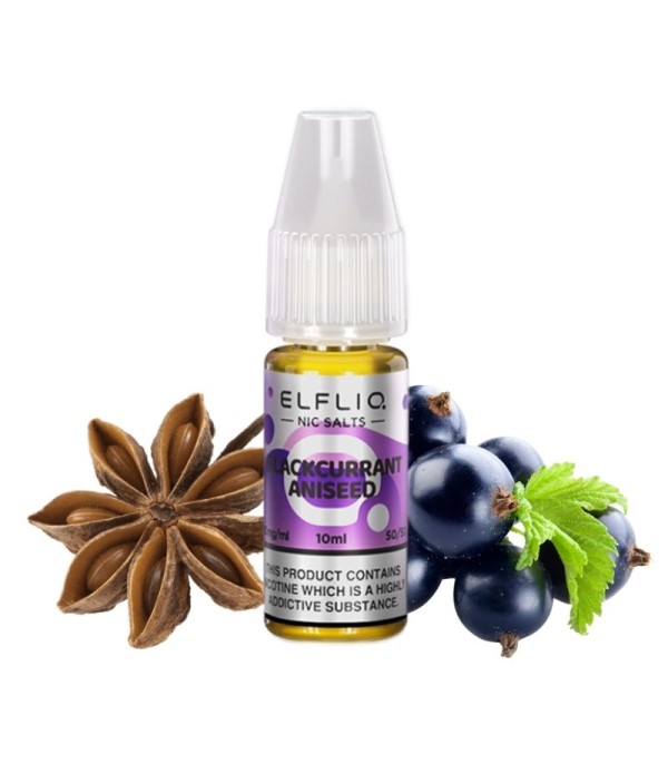 Elfliq Blackcurrant Aniseed Salt Likit 10ml şişe, kuş üzümü ve anason aromalı.