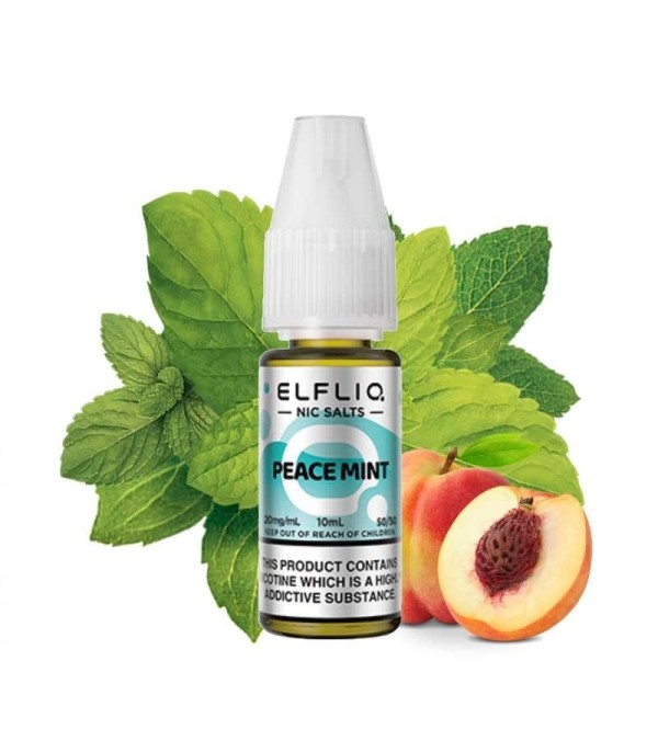Elfliq Peace Mint Salt Likit, şeftali ve nane aromalı e-likit şişesi.