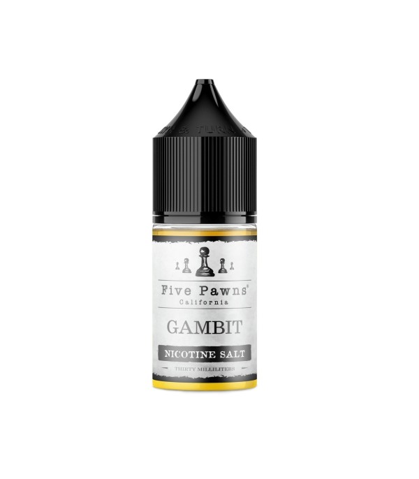 Five Pawns Gambit Salt Likit, 30ml, siyah kapaklı, nikotin tuzlu e-likit şişesi.