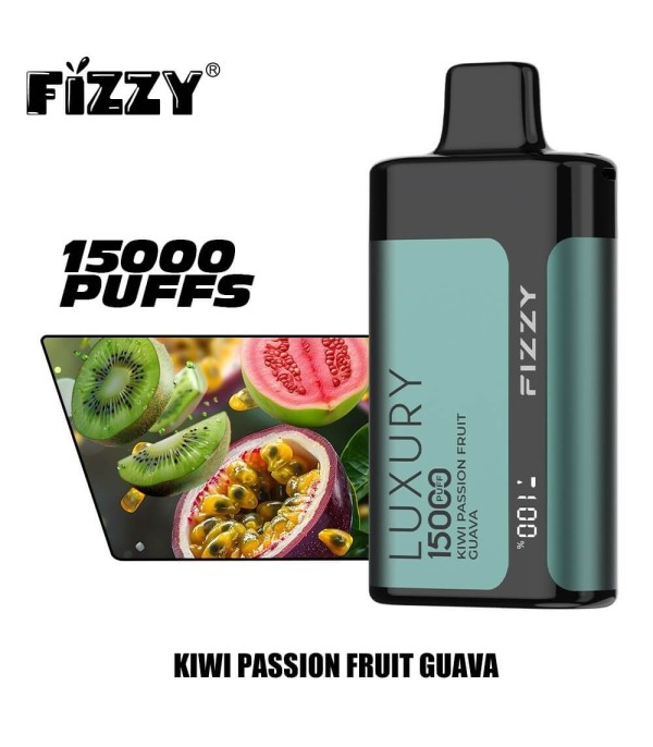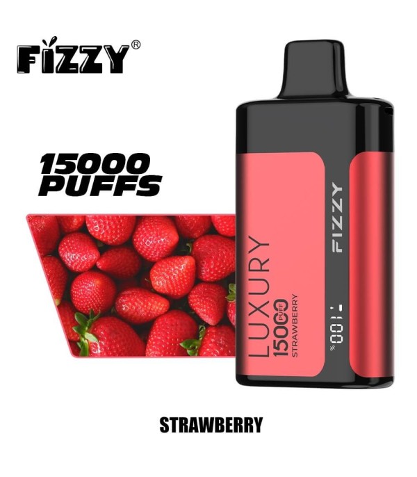 Fizzy Luxury 15000 Puffs Disposable Vape, 22 mL hazır dolu likit ve yaklaşık 15.000 puff kapasitesiyle uzun süreli kullanım sunar. Mesh coil yapısı, ayarlanabilir hava akımı ve LCD ekran ile aroma ve buhar yoğunluğunu kontrol etme imkânı verir. Aroma çeşitleri arasında Yaban Mersini & Ahududu, Çilek, Şeftali, Kivi Tutku Meyvesi gibi tatlı ve meyvemsi seçenekler bulunur. Metal gövde tasarımı ve taşıma halkasıyla hem dayanıklı hem şık bir kullanım deneyimi sağlar.