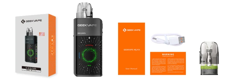 GeekVape Digi Q Vista, çarpıcı 3D ekran tasarımı, güçlü bataryası ve çok yönlü ayar seçenekleri ile hem yeni başlayanlara hem de deneyim isteyen vaper’lara hitap eden modern bir pod sistemidir. 1600mAh dahili batarya ve USB-C hızlı şarj desteği ile tüm gün süren kullanımlar için uygundur. ECO, SMART ve DYNAMIC modları sayesinde cihaz, pod’un direncine ve kullanıcı tercihine göre performansını otomatik olarak dengeler.