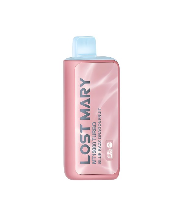 Lost Mary MT15000 Turbo, 15.000 pufa kadar kullanım, %5 nikotin (50 mg), 16 mL dolum, USB Type-C şarj, çift mesh coil ve LCD ekran ile uzun ömür ve yoğun aroma sunan şarj edilebilir kullan at elektronik sigaradır.