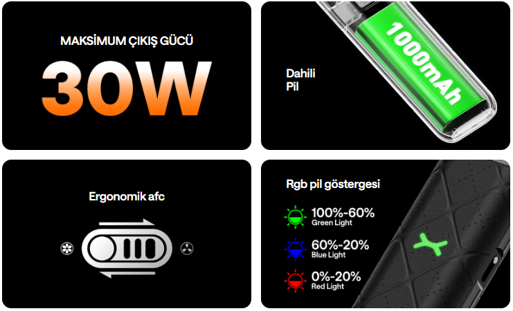 • Batarya Kapasitesi: 1000mAh dahili