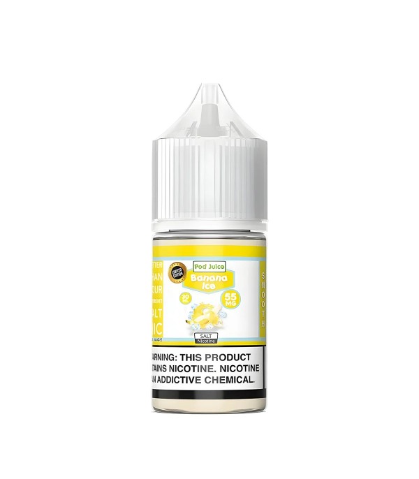 Pod Juice Banana Ice Salt Likit, olgun muz aromasıyla buzlu ferahlığın birleştiği tatlı ve serinletici bir elektronik sigara likitidir. 50VG / 50PG oranı sayesinde yumuşak içim ve yoğun aroma dengesi sağlar. 30 mL şişede; 35 mg ve 55 mg nikotin seçenekleriyle üretilmiştir.