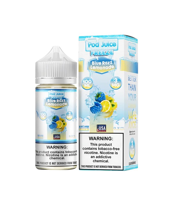 Pod Juice Freeze Blue Razz Lemonade E-Likit, mavi ahududunun tatlı-ekşi lezzetini ferah limonata ve buzlu serinlik ile buluşturan etkileyici bir karışımdır. 70VG / 30PG oranı sayesinde yoğun aroma ve pürüzsüz buhar performansı sağlar. 100 mL şişede; 0 mg, 3 mg ve 6 mg nikotin seçenekleriyle üretilmiştir.