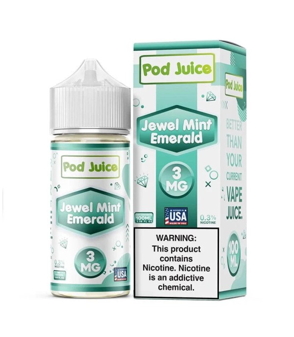 Pod Juice Jewel Mint, mentol ve nane aromalarının ferahlatıcı birleşimini sunan klasik bir elektronik sigara likitidir. 70VG / 30PG oranı ile yoğun buhar ve net aroma dengesi sağlar. 100 mL (veya 60 mL) şişede; 0 mg, 3 mg ve 6 mg nikotin seçenekleriyle sunulur.