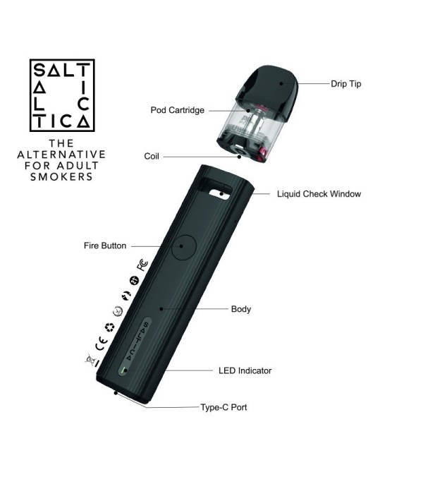 Saltica Pod Mod Siyah Renk, Kompakt Elektronik Sigara Cihazı Saltica Pod Mod Siyah Renk, Kompakt Elektronik Sigara Cihazı