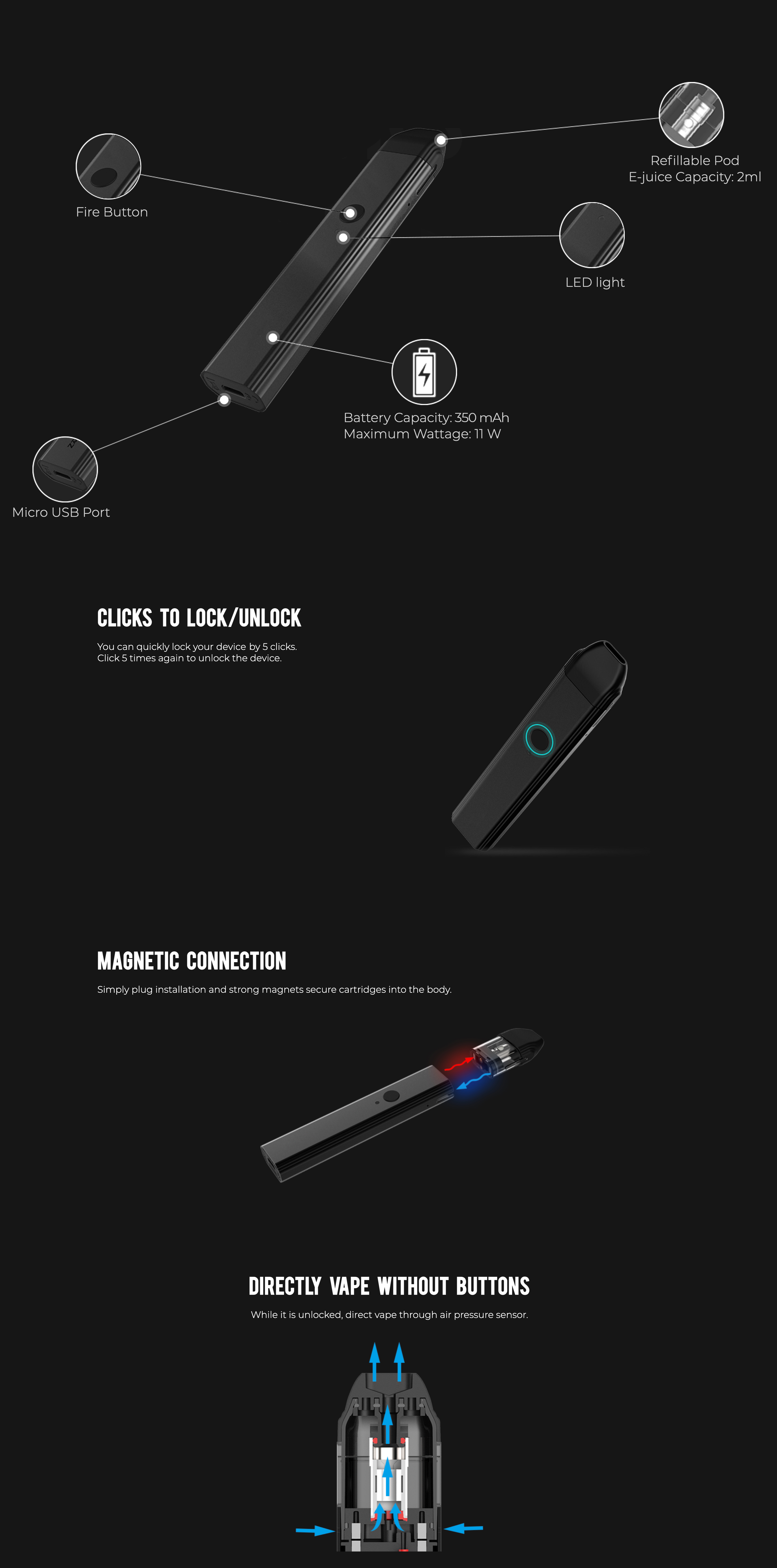 Saltica G2: 2ml hazne, 750mAh batarya, 18W maksimum güç. Hafif ve şık tasarım. Titreşim ve ışıklı özellikler. Şimdi keşfedin!