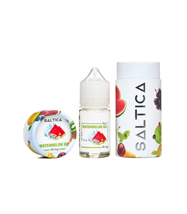 Saltica Watermelon Ice Salt Likit şişesi, karpuz ve buz efektli.