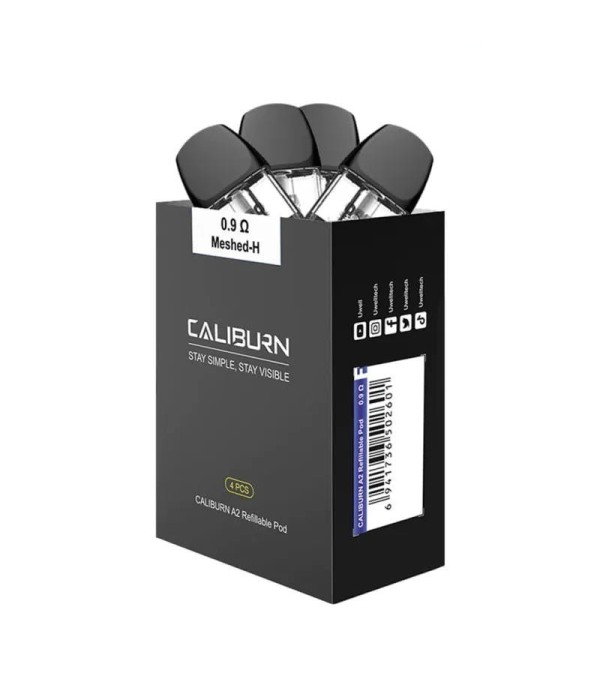 Uwell Caliburn A2 Kartuş 0.9Ω Meshed-H, 4 Adet Siyah Yedek Pod