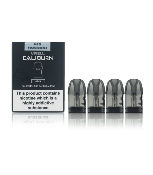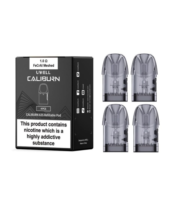 Uwell Caliburn A2 Kartuş 0.9Ω Meshed-H, 4 Adet Siyah Yedek Pod