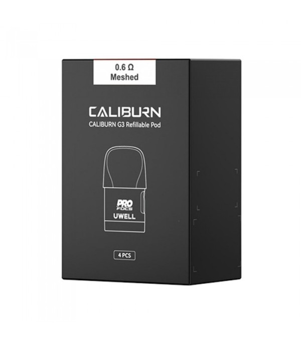 UWELL Caliburn G3 Yedek Podlar, seçtiğiniz 0,6 Ohm pod bobini veya 0,9 Ohm pod bobini ile birlikte gelir ve dört (4) adet yeniden doldurulabilir Pod Kartuşundan oluşan bir paket halinde gelir.