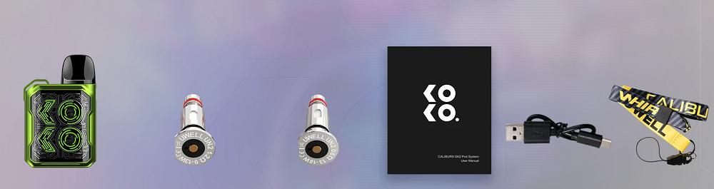 Uwell Caliburn KOKO Pod Mod520mAh dahili şarj edilebilir pil ile güçlendirilmiş olan KOKO, günlük kullanım için ideal olup, cebinizde veya çantanızda rahatlıkla taşıyabileceğiniz kadar hafif ve kompakttır.