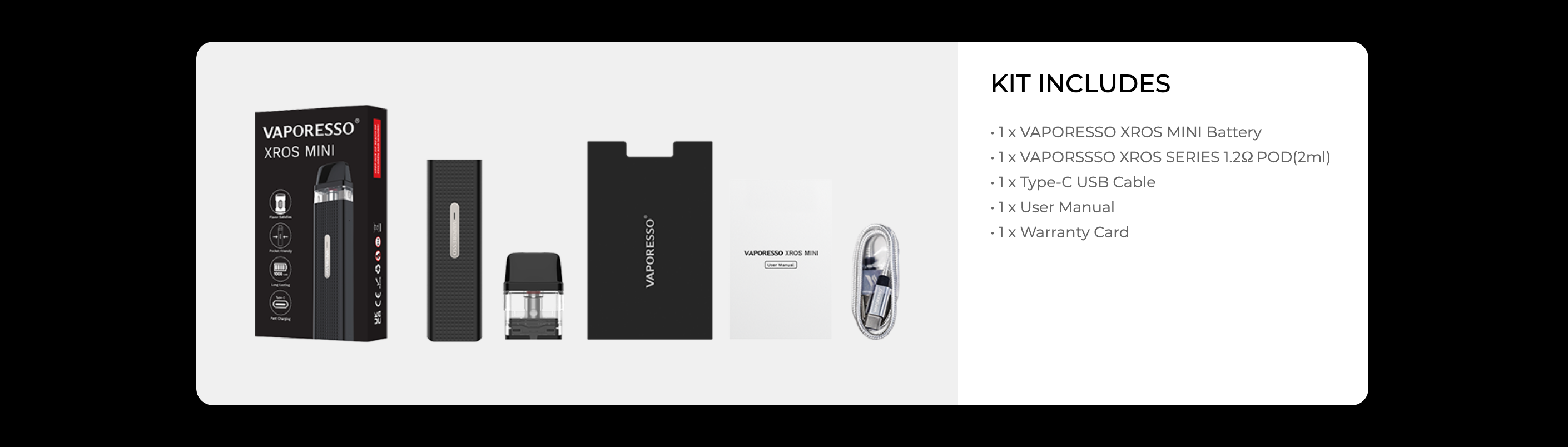Vaporesso XROS Mini Pod, Vaporesso XROS ailesinin en yeni üyesidir ve günlük kullanım için mükemmel bir MTL (Ağızdan Akciğere) buhar deneyimi sunar. Cihaz, 1000mAh yerleşik pil kapasitesine sahip olup, yaklaşık 2 günlük kullanım süresi sunar. Ayrıca 5V/1A USB Type-C hızlı şarj desteği sayesinde hızlıca şarj edilebilir. Lüks elmas desenli yüzeyi ile kusursuz bir tutuş sağlar ve elden kayma ihtimalini en aza indirir. SSS Sızıntıya Dayanıklı Teknoloji ile donatılmış olan Vaporesso XROS Mini Pod, tüm Vaporesso XROS Kartuşları ile uyumludur.