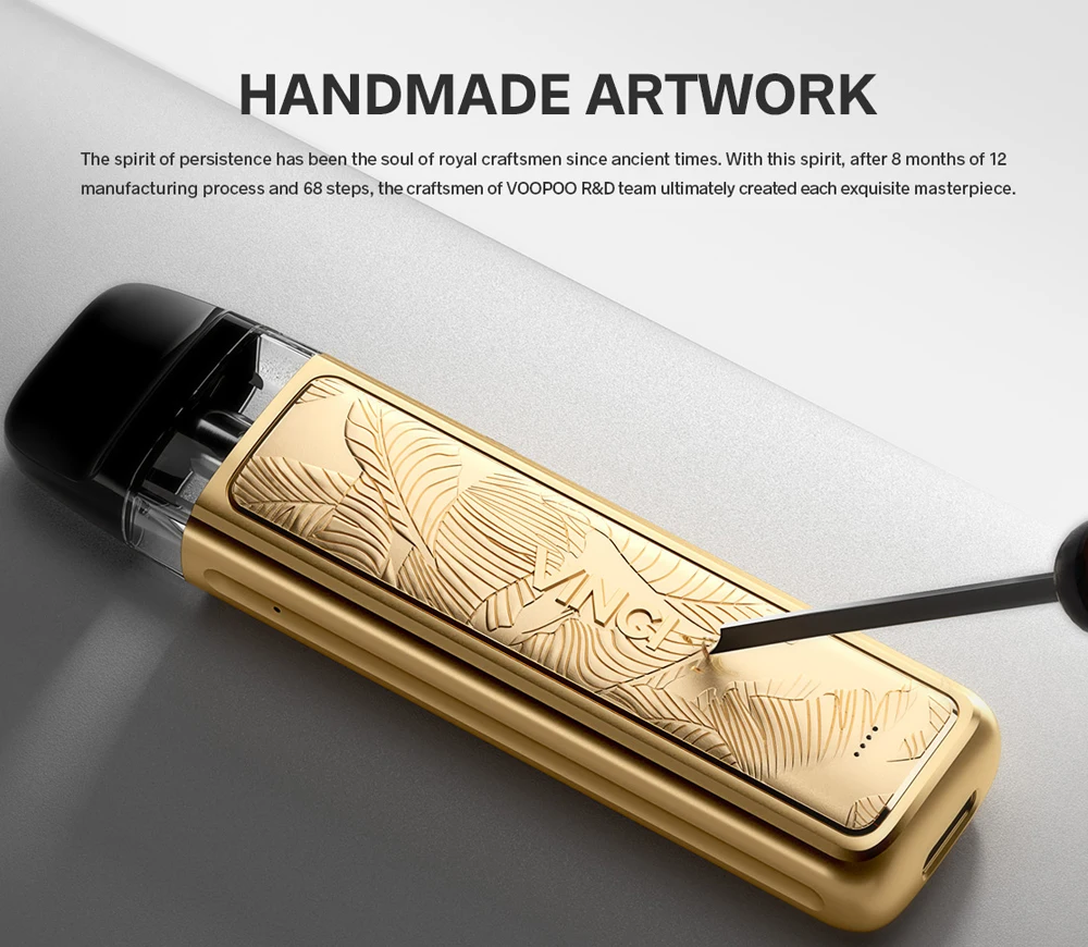 VINCI Pod Kit Royal Edition, yalnızca VINCI Pod'un taşınabilir görünümünü miras almakla kalmıyor, aynı zamanda 6061 alüminyum alaşımından oluşan havacılık malzemesiyle birlikte klasik kabartma heykel teknolojisini de kullanıyor. VINCI Pod Kit Royal Edition, 11-15W güç aralığına sahip 800mAh dahili pile sahiptir. 2ml kapasiteli, üstten doldurulabilir görünür kartuşla donatıldığından, yeniden doldurmanız kolaydır. VINCI Pod Kit Royal Edition'a yükseltilmiş sızıntıya karşı dayanıklılık işlevi uygulanmıştır. Pakette iki bölme bulunmaktadır: örgü 0.8 Ohm bölme ve örgü 1.2 Ohm bölme. Ayrıca VINCI Pod Kit Royal Edition, Vinci Q, Drag Nano 2 ve Vinci Pod kartuşlarıyla uyumludur.